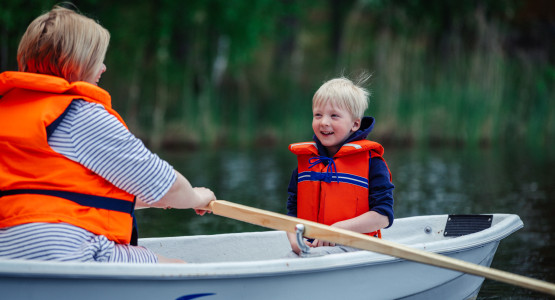 - Jokaisella mökillä on oma soutuvene, Syväjärvellä kaksikin. Ilmoita varatessasi, kuinka monet pelastusliivit tarvitset, jotta osaamme toimittaa oikean määrän oikeaa kokoa mökille.