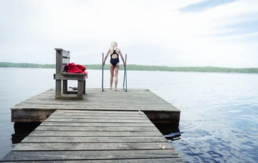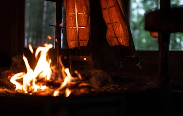 Suihku, puulämmitteinen sauna mökissä