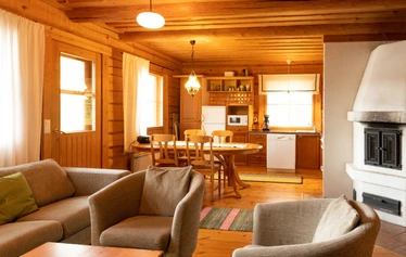 Kuivauskaappi hoitaa ulkoiluvaatteiden helpon kuivaamisen. Mökillä on myös hyvän sijaintinsa vuoksi helppo järjestää syntymäpäiviä ja kokouksia (1 km Valtatie 13:lta). Olohuone ja keittiö ovat yhtä avointa tilaa. Olohuoneessa on iso sohvaryhmä yhteiseen oleiluun, ja hyvinvarusteltu keittiö.