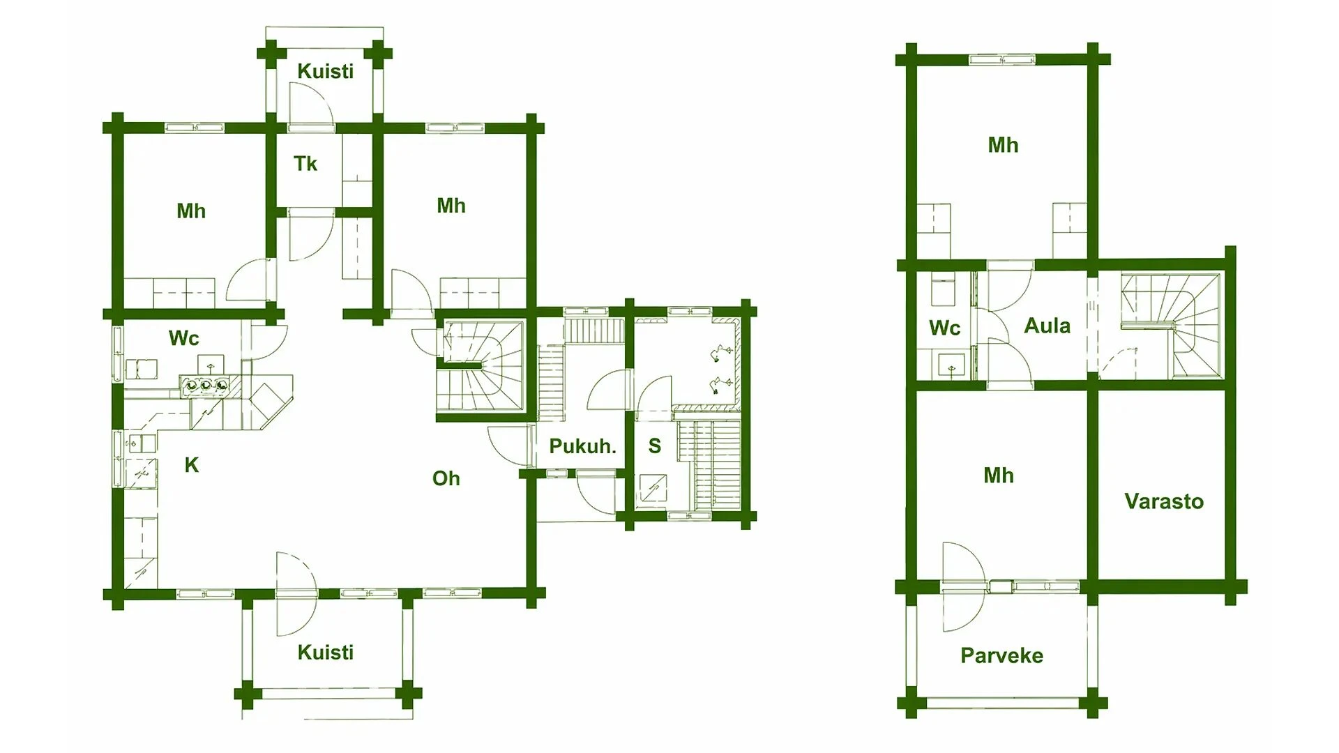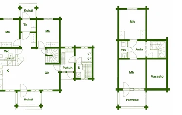107 m2 kahdessa kerroksessa, iso tupakeittiö, 2 WC:tä, suihku, sähkölämmitteinen sauna