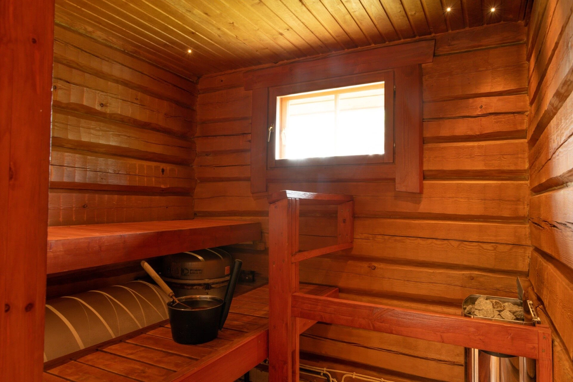 Erillinen savusauna 20 metrin päässä (maksullinen, isäntäväki lämmittää)